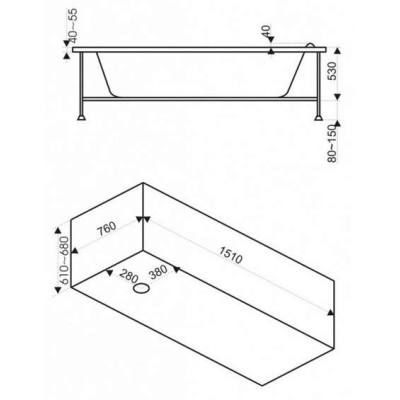 Акриловая ванна BAS Ибица 150x70, прямоугольная В 00011. Материал-лист акрила толщиной 0.5 см, армированный стекловолокном. Регулируемая высота ножек. Изображение и цвет на мониторе могут отличаться от оригинала. Комплектность: