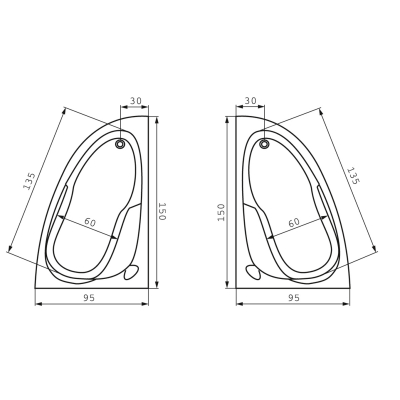 Акриловая ванна Cersanit Joanna 150x95, угловая правая. Все характеристики |