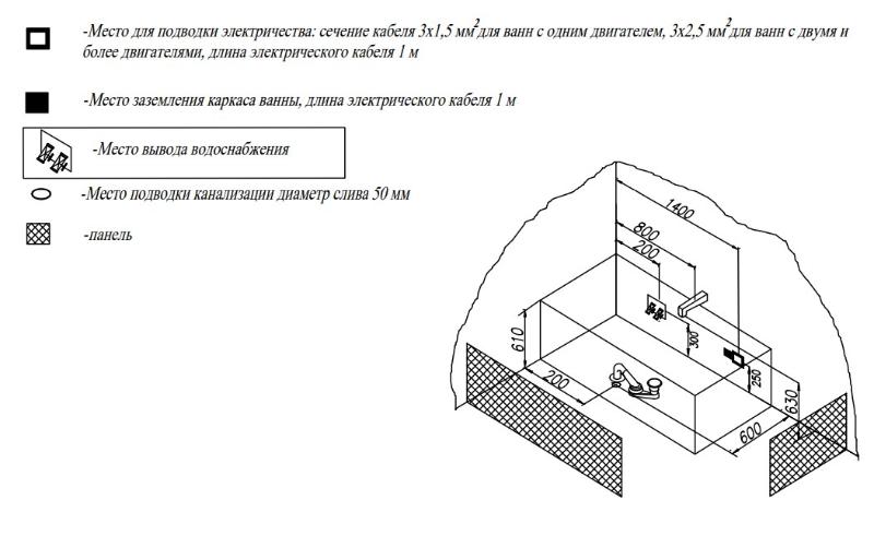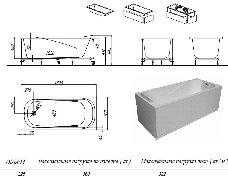 Дополнительно комплектуется: ножки или каркас, панель, смеситель, сифон. |