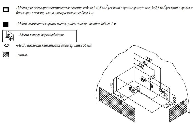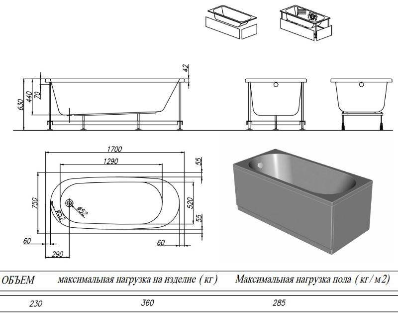 Дополнительно комплектуется: ножки или каркас, панель, смеситель, сифон. |
