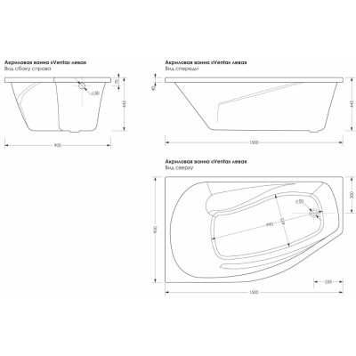 Акриловая ванна Метакам Venta 150x90 L угловая левая. Все характеристики |