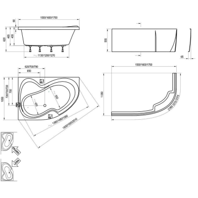 Акриловая ванна Ravak Rosa II Pu-Plus 170x105, правая. Все характеристики |