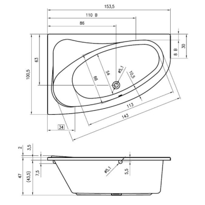 Акриловая ванна Riho Lyra 153x100, угловая правая. Все характеристики |