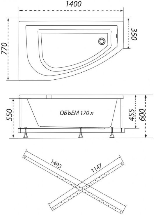 Дополнительно комплектуется: каркас, панель, смеситель, сифон. |