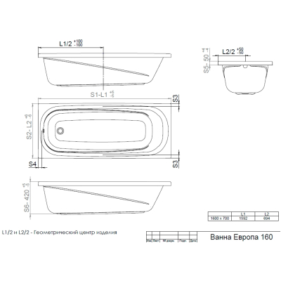 Акриловая ванна Triton Европа 160x70, Щ0000043363. Все характеристики |
