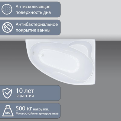 Акриловая ванна Triton Изабель 170x100, правая из литьевого акрила Senoplast (Австрия) и Altuglas (Голландия).Свойства акрила. Толщина акрилового листа до 4-6 мм. Поверхность идеально гладкая и белоснежная. Ванна долго держит тепло, стойкая к механическому воздействию. Антибактериальное покрытие Antibak. Ванны усилены многократным армированием для дополнительной устойчивости. Ванна Изабель 170x100 см, правая на 100% гигиеничная и безопасная. Производство. Компания Тритон ведущий производитель акриловых ванн в России c 2000 года. Продукция изготавливается на европейском оборудовании. Дизайн. Каждая модель разработана европейскими дизайнерами. Все ванны Тритон с удобными и эргономичными формами. Комплектация. Возможна установка гидромассажного оборудования на ванну по желанию клиента. Гарантия. Заводская гарантия 10 лет. Изображение и цвет на мониторе могут отличаться от оригинала. Комплектность: