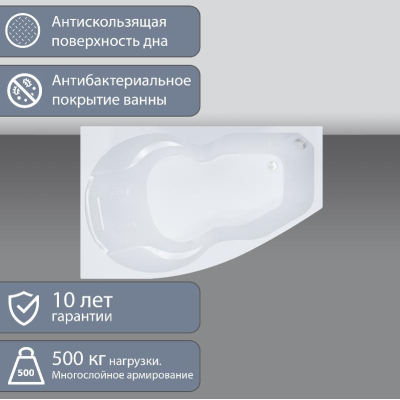 Акриловая ванна Triton Лайма 160x95, правая из литьевого акрила Senoplast (Австрия) и Altuglas (Голландия).Свойства акрила. Толщина акрилового листа до 4-6 мм. Поверхность идеально гладкая и белоснежная. Ванна долго держит тепло, стойкая к механическому воздействию. Антибактериальное покрытие Antibak. Ванны усилены многократным армированием для дополнительной устойчивости. Ванна Лайма 160x95 см, правая на 100% гигиеничная и безопасная. Производство. Компания Тритон ведущий производитель акриловых ванн в России c 2000 года. Продукция изготавливается на европейском оборудовании. Дизайн. Каждая модель разработана европейскими дизайнерами. Все ванны Тритон с удобными и эргономичными формами. Комплектация. Возможна установка гидромассажного оборудования на ванну по желанию клиента. Гарантия. Заводская гарантия 10 лет. Изображение и цвет на мониторе могут отличаться от оригинала. Комплектность: