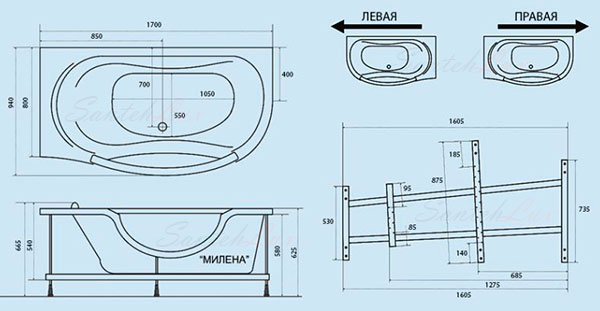 Каркас в комплекте.Дополнительно комплектуется передней панелью, ручками, подголовником, смесителем, гидромассажем. |