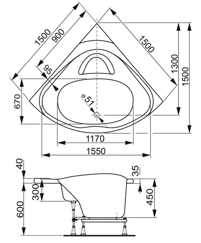 Акриловая ванна VagnerPlast Athena 150x150, угловая. Все характеристики |