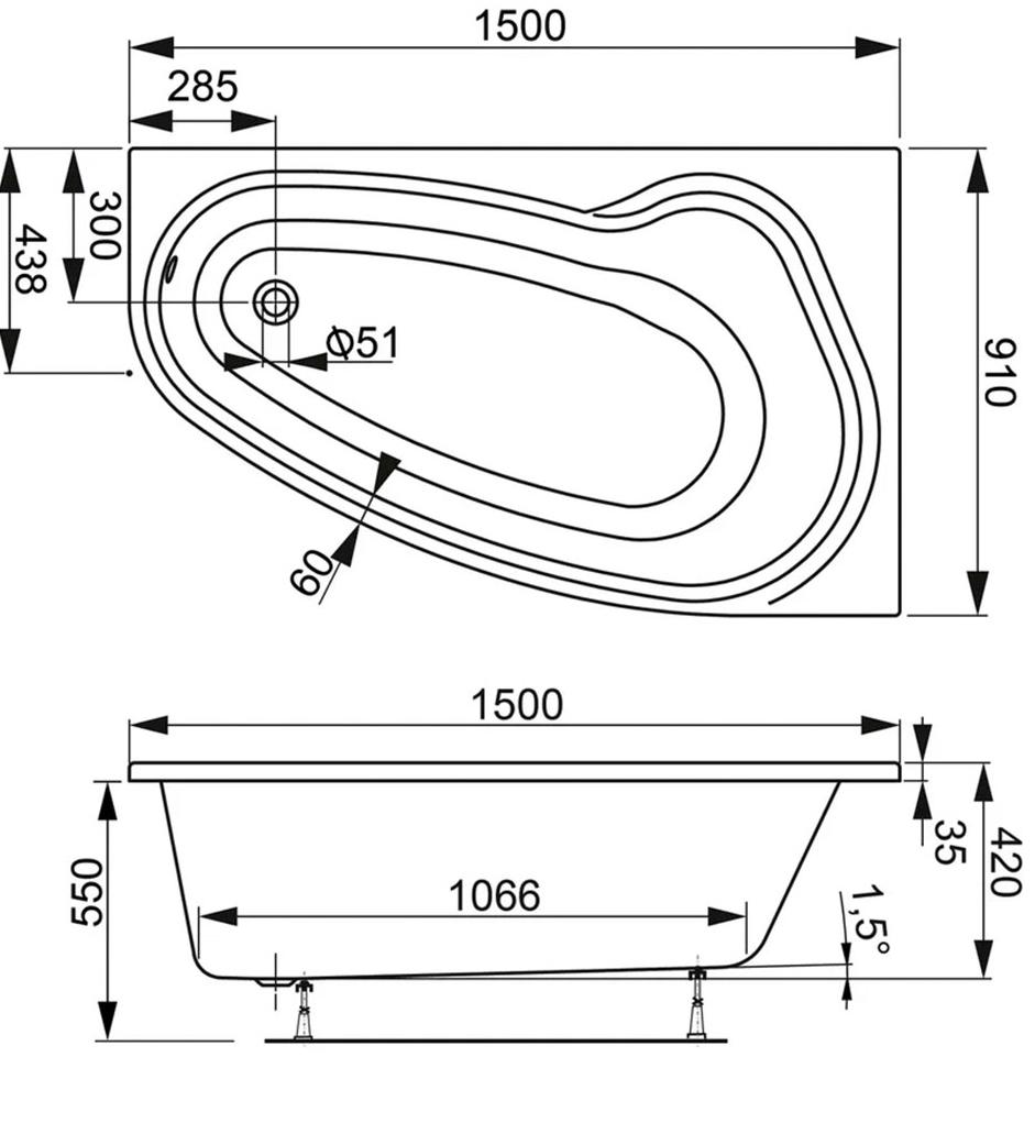 Акриловая ванна VagnerPlast Avona L 150x90, угловая левая. Все характеристики |