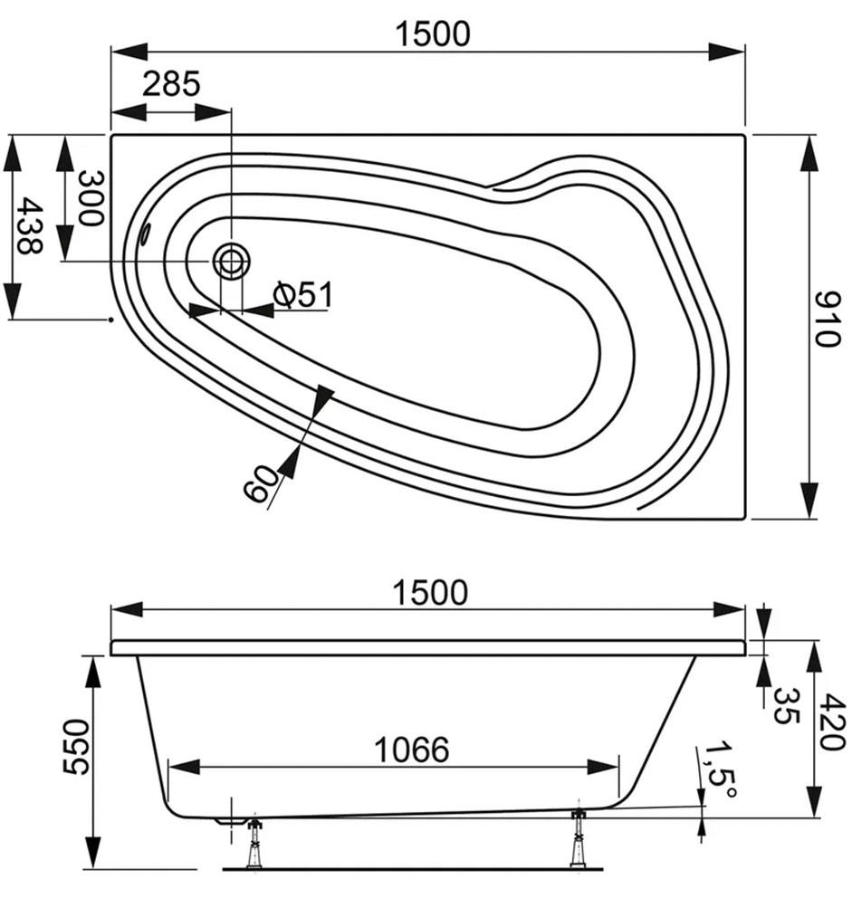 Акриловая ванна VagnerPlast Avona P 150x90, угловая правая. Все характеристики |