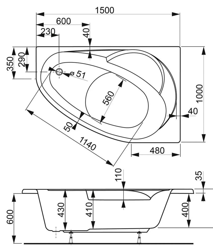 Акриловая ванна VagnerPlast Flora L 150x100, угловая левая. Все характеристики |