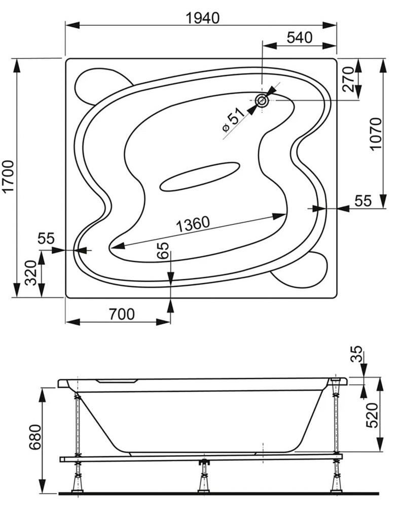 Акриловая ванна VagnerPlast Helios 194x170 встраиваемая. Все характеристики |