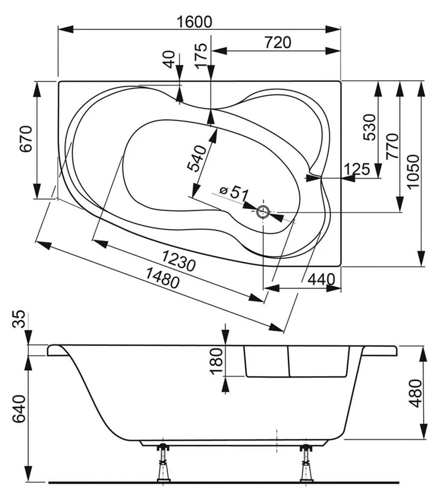 Акриловая ванна VagnerPlast Melite L 160x105, угловая левая. Все характеристики |