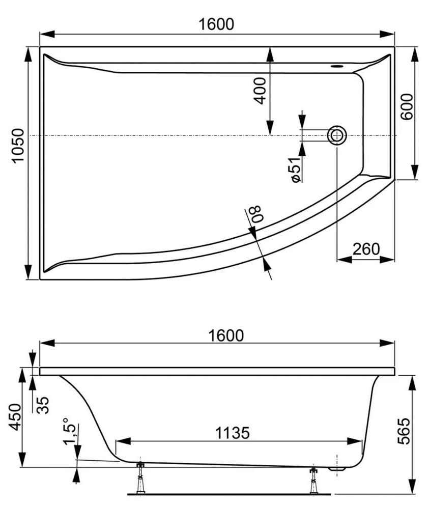 Акриловая ванна VagnerPlast Veronela Offset L 160x105, угловая левая. Все характеристики |
