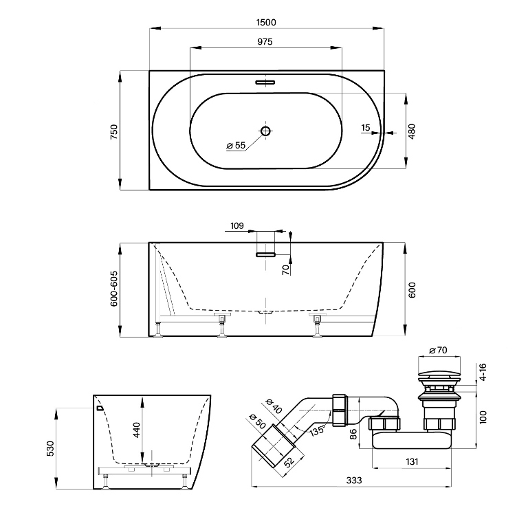 В комплекте: несъемный экран, встроенный каркас, сифон с возможностью верхней прочистки, донный клапан click-clack, фирменная металлическая накладка на перелив 231925000 золото. |