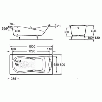 Дополнительно комплектуется смесителем, сифоном, подголовником полиуретановым А291051000 |
