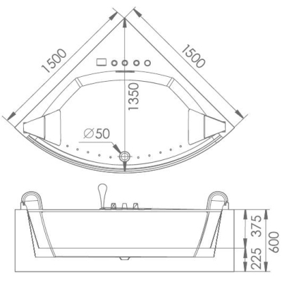 В комплекте: каркас, душевая лейка, смеситель с изливом, подголовник, слив-перелив, аэромассаж, TV, радио, пульт дистанционного управления. |