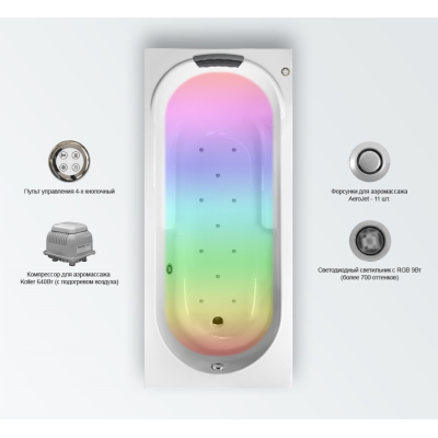В комплекте: металлический каркас с монтажным набором 35500021, подголовник AH17, комплект для аэромассажа и хромотерапии на электроуправлении со стоп-функцией 19P2NA: электронный пульт, микропроцессор, таймер, аэрофорсунки-11 шт., компрессор Koller 640 Вт. с подогревом, автоматическая сушка, датчик уровня воды для защиты от сухого пуска.Дополнительно комплектуется: утраплоский фронтальный экран 35500031, ультраплоский боковой экран 35500041, смеситель, сифон. Внимание! Комплектация гидромассажа на фотографии ванны представлена для ознакомления. Виды гидромассажных систем, количество форсунок и их расположение возможны в нескольких вариантах. Для уточнения деталей по итоговому комплекту гидромассажной ванны просьба обращаться за консультацией к нашим менеджерам. |