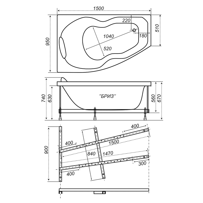 Гидромассажная ванна Triton Бриз Люкс 150x95, левая. Все характеристики |