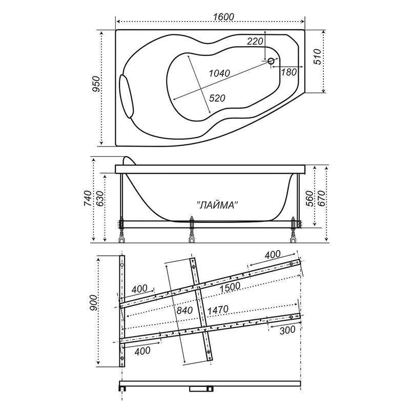 Гидромассажная ванна Triton Лайма Базовая 160x95, правая. Все характеристики |