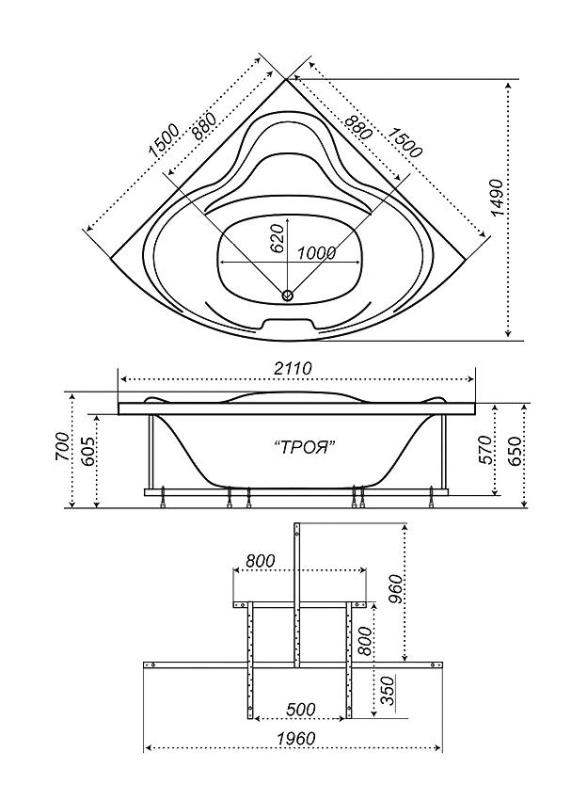 Гидромассажная ванна Triton Троя Стандарт Flat 150x150, угловая, Щ000005002. Все характеристики |