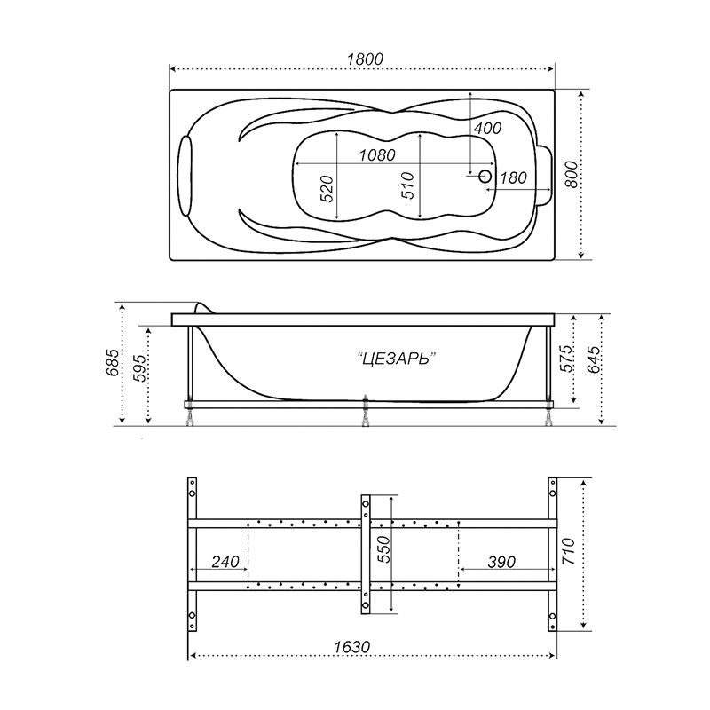 Гидромассажная ванна Triton Цезарь Люкс Flat 180x80, Щ000002104. Все характеристики |