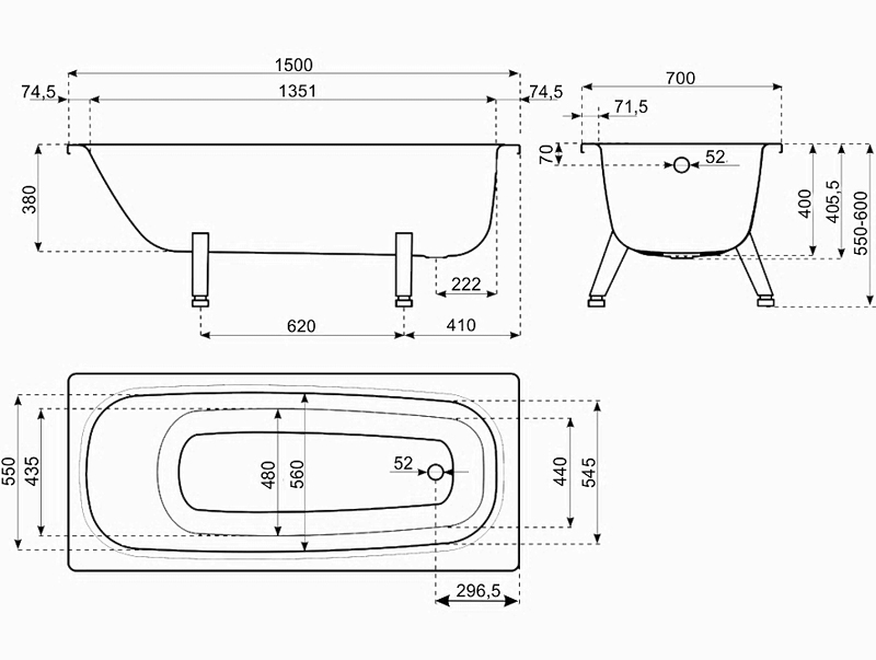 Ванна ВИЗ Tevro 150x70 см T-52902 из титановой низкоуглеродистой стали толщиной 2 мм.Свойства. Эмаль оттенка белый лотос. Толщина ванны вместе с покрытием до 2.7 мм. Изображение и цвет на мониторе могут отличаться от оригинала. Комплектность: