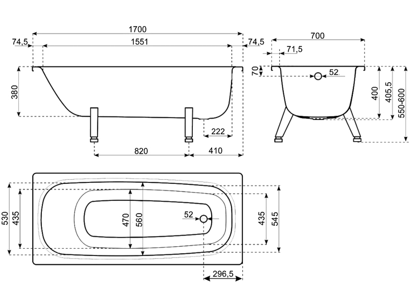 Стальная ванна ВИЗ Tevro 170x70. Все характеристики |