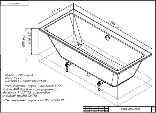 Свободностоящая композитная ванна Belux Юлия ВЮ-1700 170x75 4810924271419 из искусственного мрамора.Свойства материала. Искусственный мрамор состоит из смеси молотых горных минералов. Белоснежная поверхность приятной на ощупь фактуры устойчивая к образованию трещин и царапин. Камень обладает высокими антибактериальными свойствами, он не токсичен, не выделяет вредных веществ, не излучает радиоактивный фон, поэтому изделие абсолютно безопасно для здоровья. Ванна долго остается теплой, сохраняет белоснежный блеск и первоначальный вид очень долгое время, а ее массивность и устойчивость исключают деформацию. Литьевая ванна Юлия ВЮ-1700 170x75 см 4810924271419 впечатляет своими надежностью и основательностью. Производство. Компания Belux старейший производитель сантехники в Беларуси, функционирует более 20 лет. Выпуск продукции осуществляется на испанском оборудовании не только для местных продаж, но и для реализации на европейских рынках. Качество. Для производства ванн Belux используют только высококачественные материалы и применяют лучшие надежные и проверенные технологии литья, что обеспечивает внушительную долговечность изделия. Дизайн. В разработке каждой модели принимают участие испанские дизайнеры. Точные размеры уточняйте у менеджеров. Изображение и цвет на мониторе могут отличаться от оригинала. Комплектность: