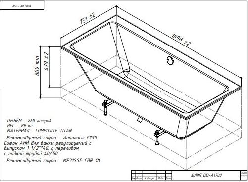 Внимание! Представленные ниже сифоны носят информационный характер и не обязательно являются подходящими под конкретную модель ванны.В комплекте: сифон. Дополнительно комплектуется: ножки, смеситель. |
