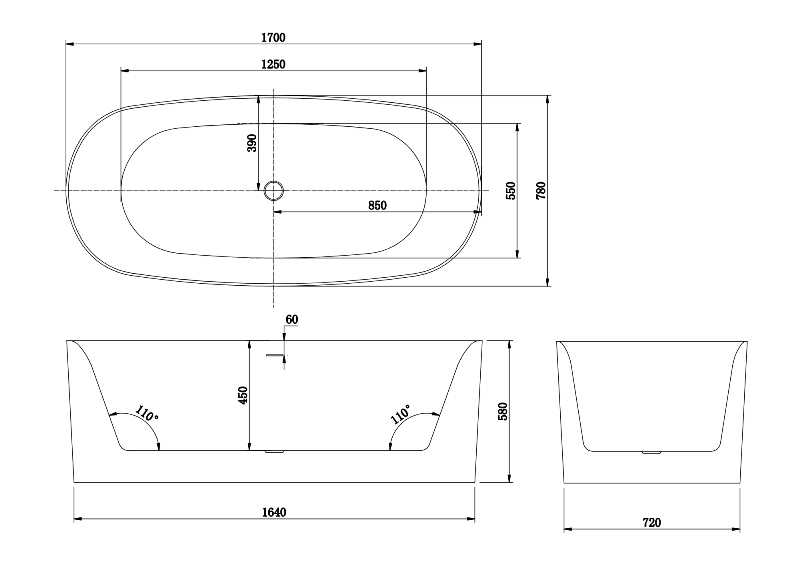 Ванна из искусственного камня Roxen Kleo 170x78 отдельностоящая, белый/серый. Все характеристики |