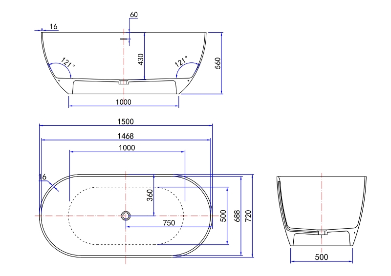 Ванна из искусственного камня Roxen Terra 150x72 отдельностоящая, белый матовый. Все характеристики |