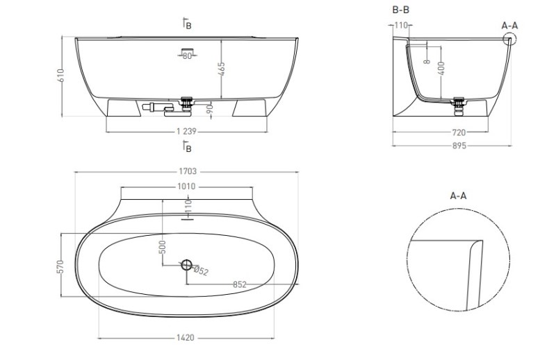В комплекте: интегрированный слив-перелив, сифон, донный клапан Click-Clack в цвет изделия с логотипом Salini.Дополнительно комплектуется: смеситель. |
