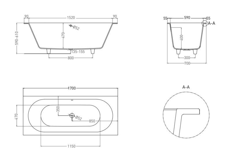 Композитная ванна Salini Ornella Axis Kit 170x70 104713G из искусственного мрамора S-Sense.Свойства материала. S-Sense – каменное литьё с премиальным декоративно-защитным покрытием Gelcoat (Англия). В основе материала смесь мраморной крошки с полиэфирной смолой. Материал экологичен, долговечен, прост в уходе и ремонте. Ванна Ornella Axis Kit 170x70 см 104713G долго сохраняет тепло, имеет глянцевое, шелковистое и приятное на ощупь покрытие. Отверстия для слива и перелива расположены посередине ванны. Предназначена как для полного или частичного встраивания, так и для пристенной или угловой установки. Производство. Компания Salini производитель итальянского бренда элитной сантехники из литого камня. Специализируется на новейших технологиях каменного полимерного литья и прочно занимает лидирующие позиции в производстве дизайнерской сантехники. Качество. Salini — это символ высочайшего качества, инноваций и традиций. Только высококачественные материалы. Применение инновационных технологий литья обеспечивает внушительную долговечность изделия. Дизайн. В разработке каждой модели принимают участие итальянские дизайнеры. Фактические размеры могут отличаться от указанных из-за особенностей производства. Гарантия: Длительная гарантия - 10 лет. Изображение и цвет на мониторе могут отличаться от оригинала. Комплектность: