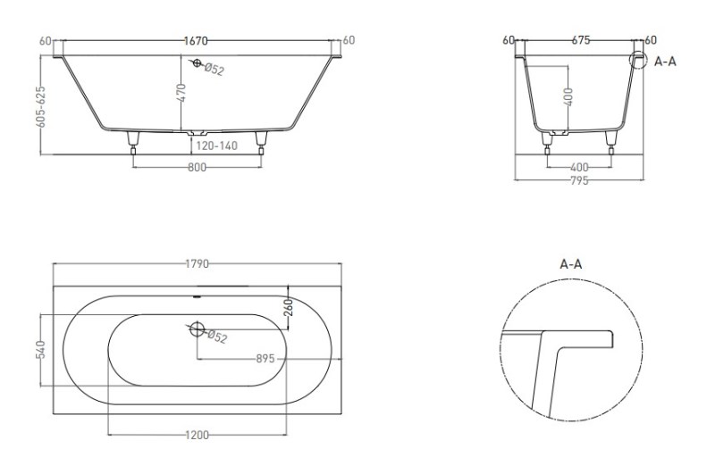 В комплекте: интегрированный слив-перелив, сифон, донный клапан Click-Clack в цвет изделия с логотипом Salini, регулируемые ножки до 2 см.Дополнительно комплектуется: смеситель. |