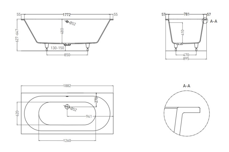 В комплекте: интегрированный слив-перелив, сифон, донный клапан Click-Clack в цвет изделия с логотипом Salini, регулируемые ножки до 2 см.Дополнительно комплектуется: смеситель. |
