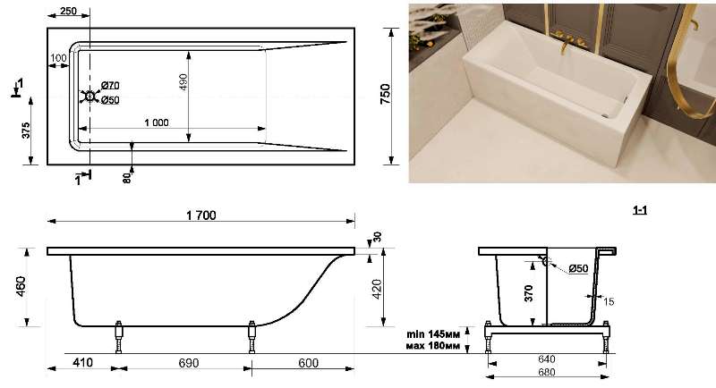 Дополнительно комплектуется: смеситель, экран, сифон, ножки. |