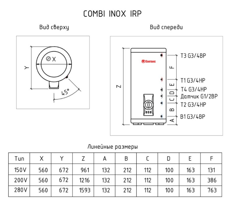 Водонагреватель Thermex Combi Inox IRP 280 V накопительный. Все характеристики |