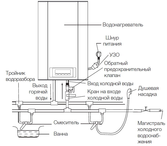 В комплекте: шнур питания, предохранительный клапан, УЗО, крепежные анкеры.Необходимо подключение напрямую к электрощиту при высокой мощности электроприбора без шнура питания и вилки в комплекте. |